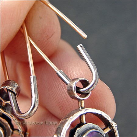 Серьги с аметистом, родолитом, цитрином и перидотом