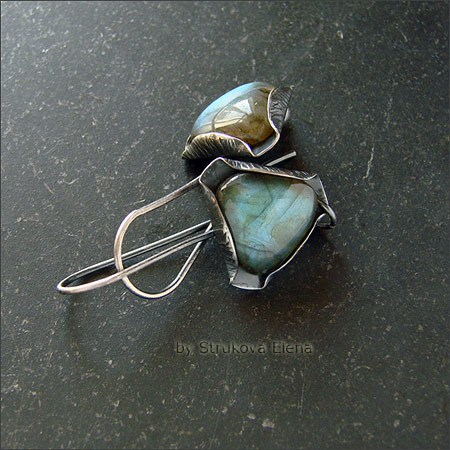 Лаконичные серьги из патинированного серебра с лабрадорами.