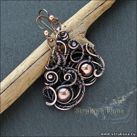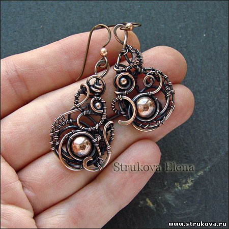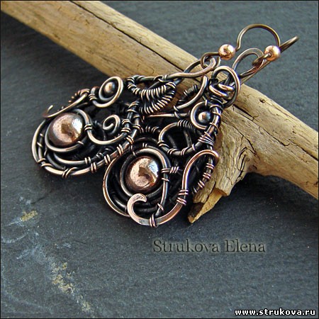 В этой паре серёг мне видится своеобразная интерпретация турецких огурцов. Медные бусины, как всегда, на своих местах =)