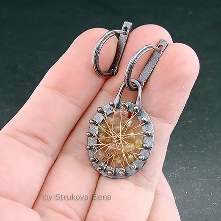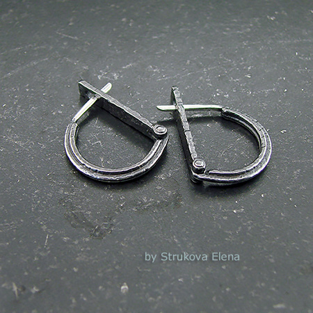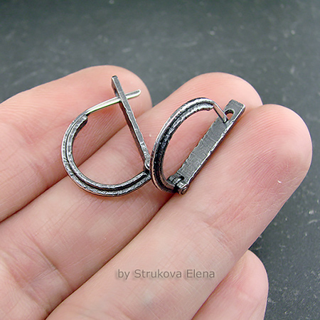 Небольшие лаконичные серьги, выполнены из патинированного серебра. На серьги можно крепить подвески, пример на последнем фото.